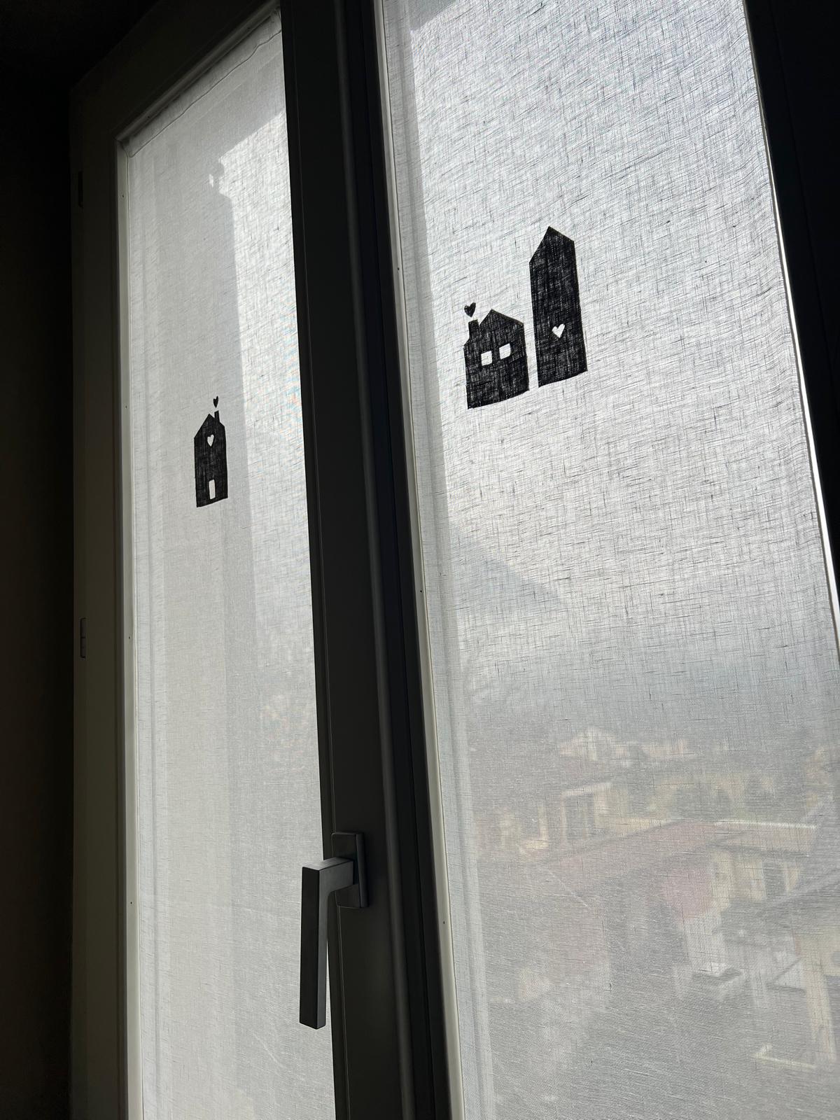 Modello tenda con applicazione 3 cuoricini – lino leggero