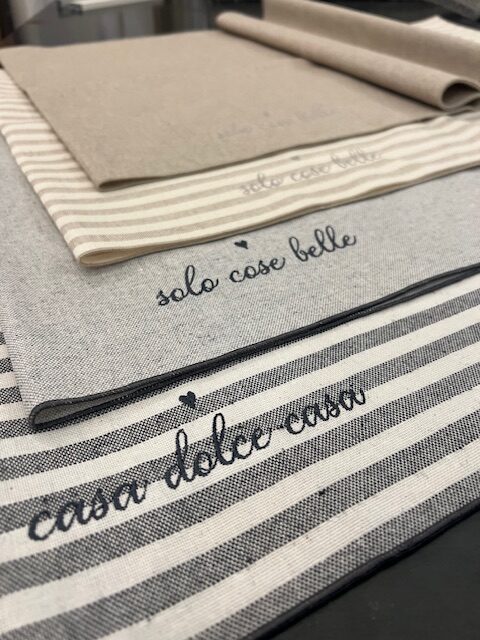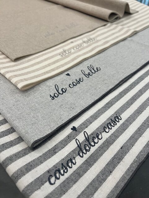 Runner cotone antimacchia scritta