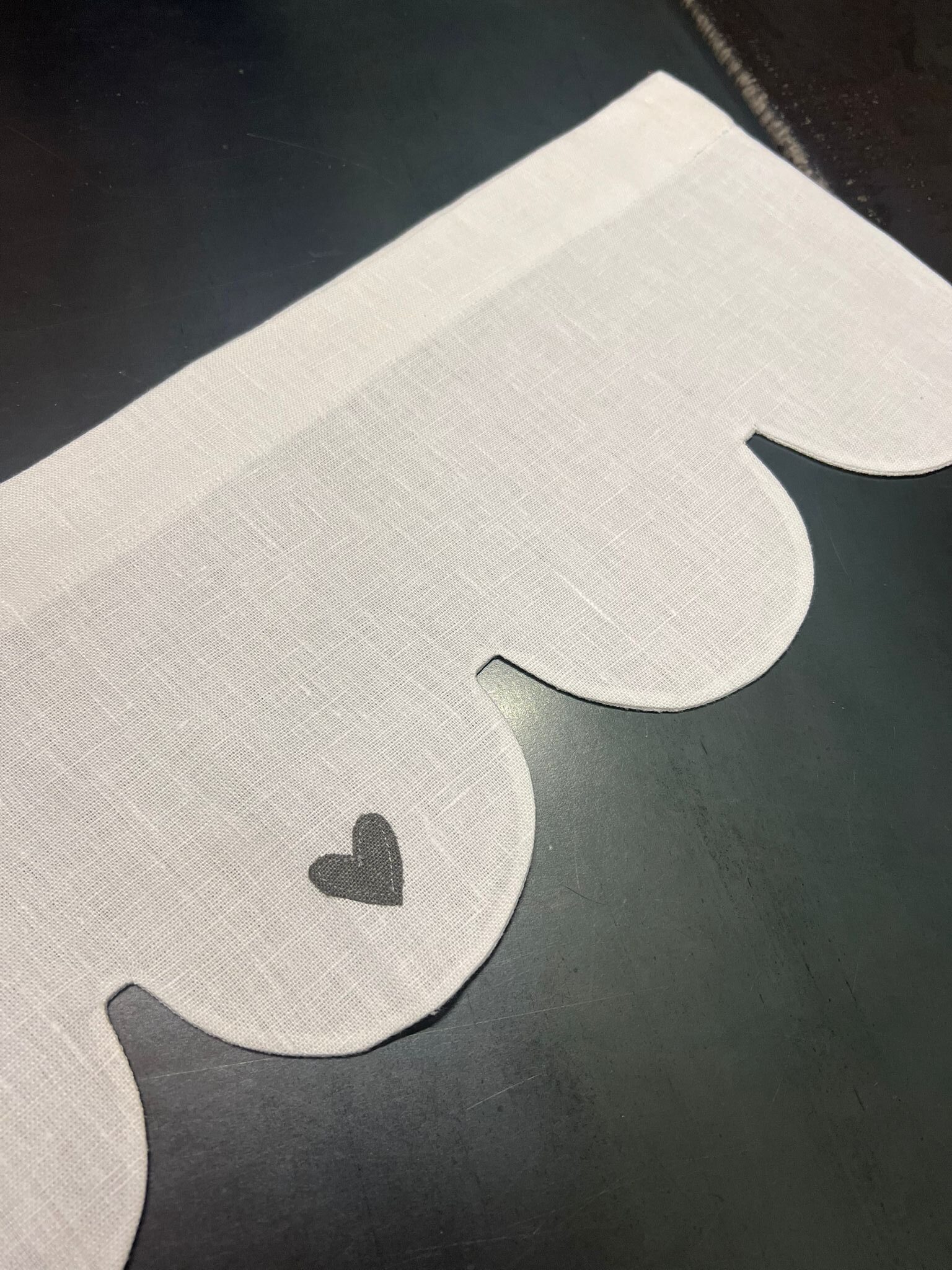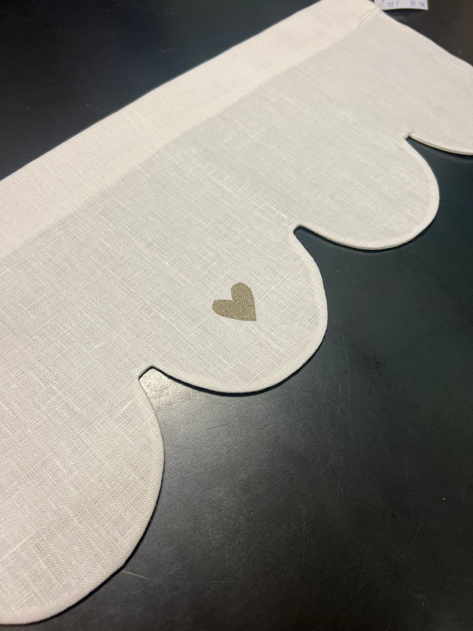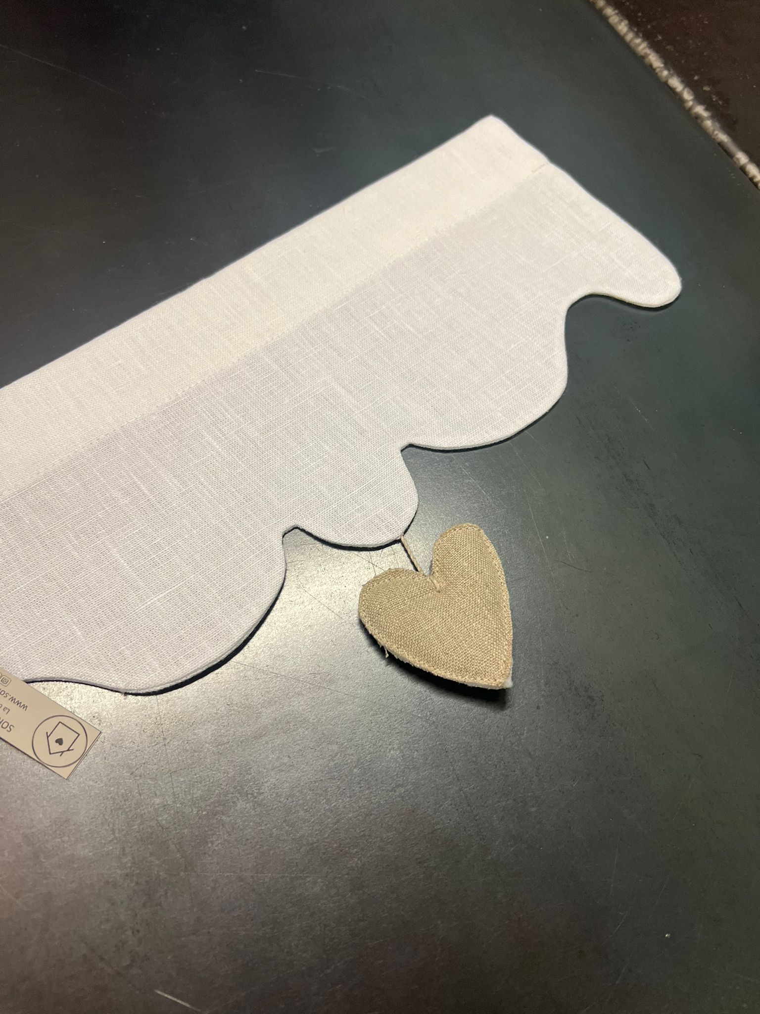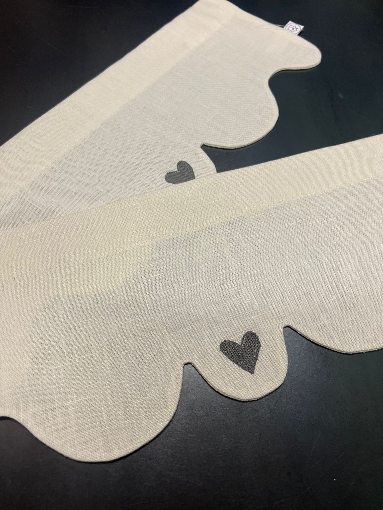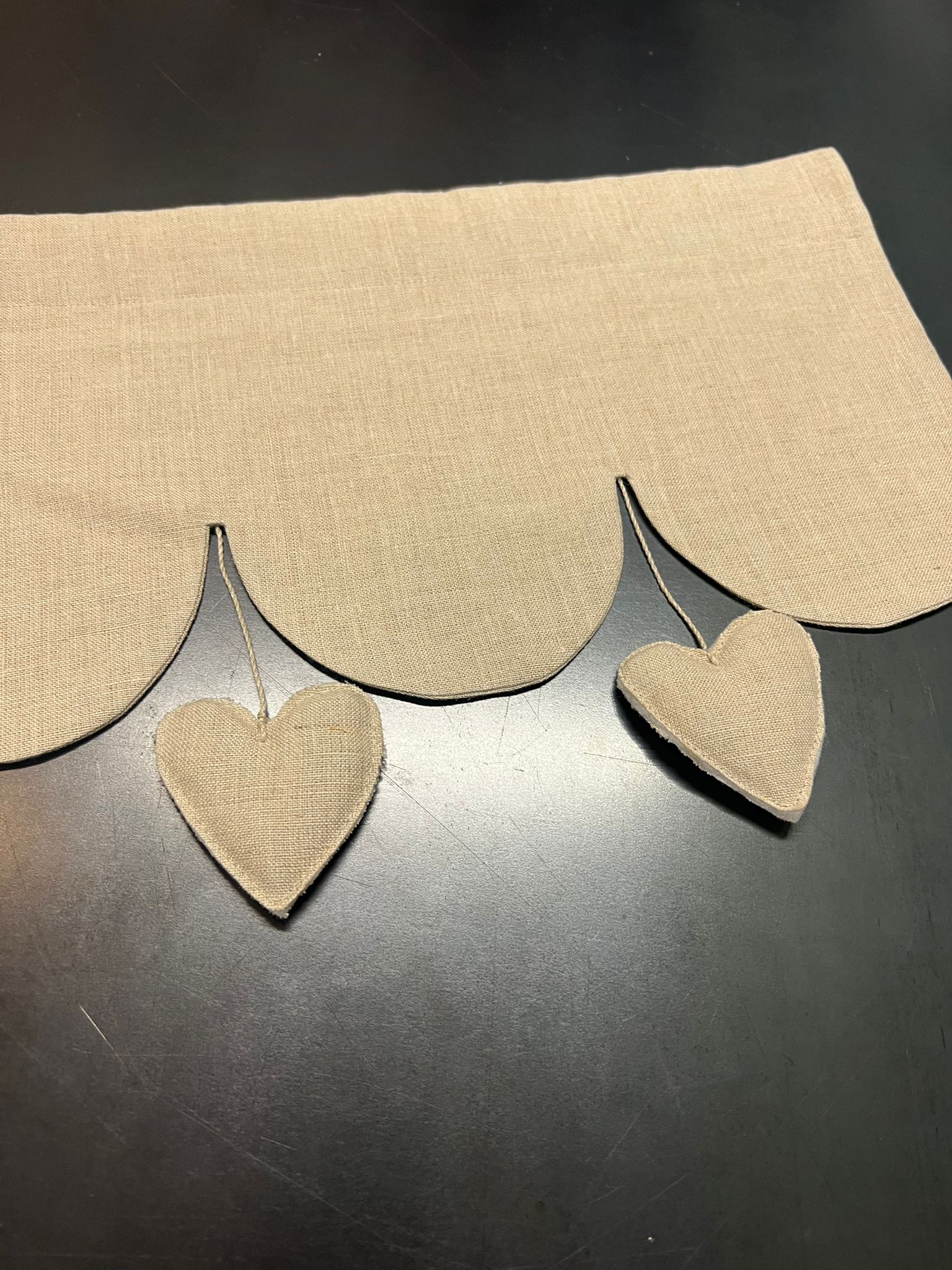 Modello tenda con applicazione 3 cuori – lino pesante