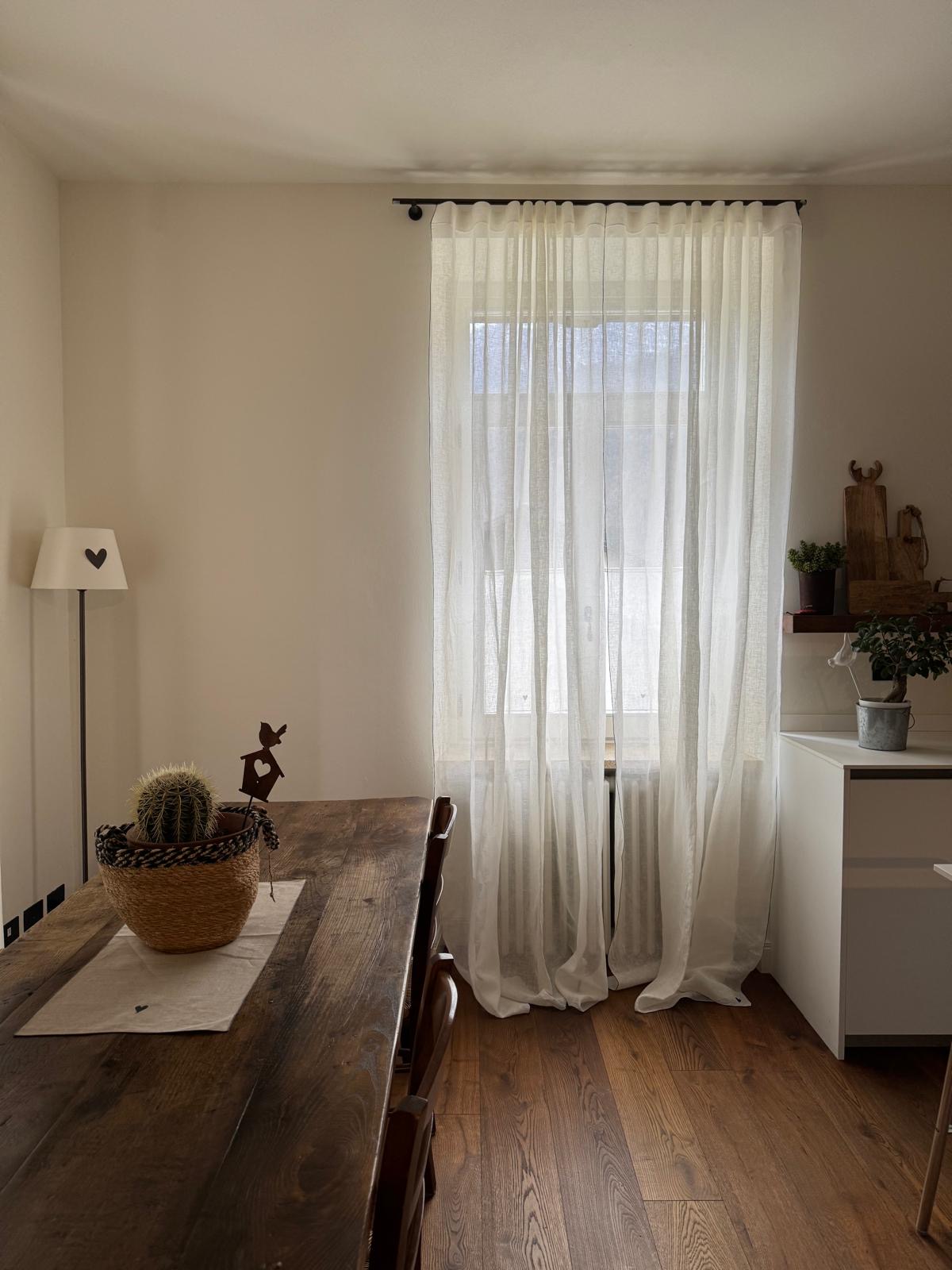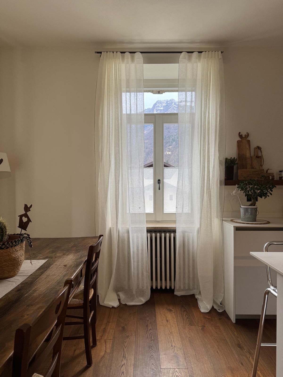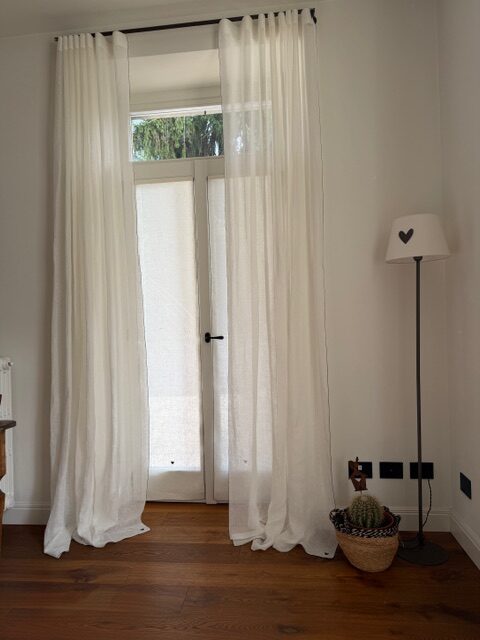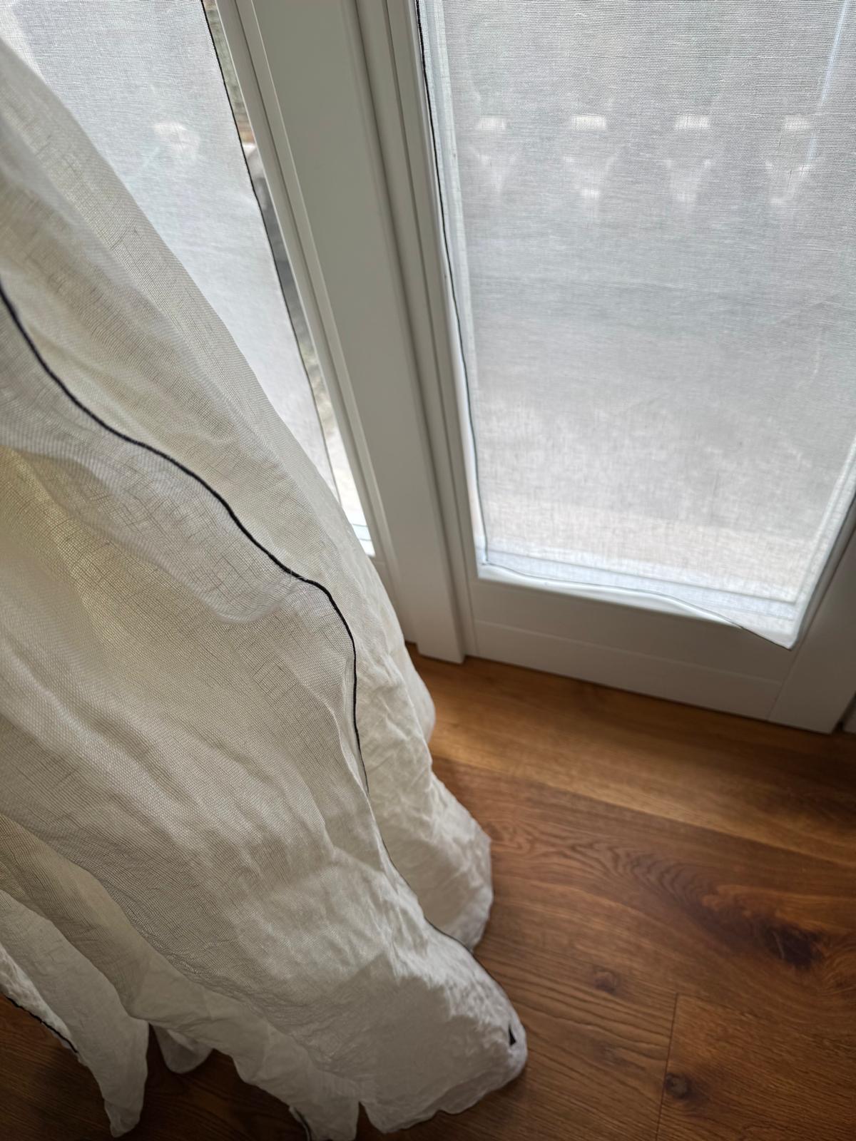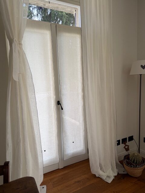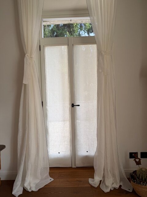 Le nostre tende a vetro in puro lino sono realizzate a mano e personalizzabili in ogni dettaglio.